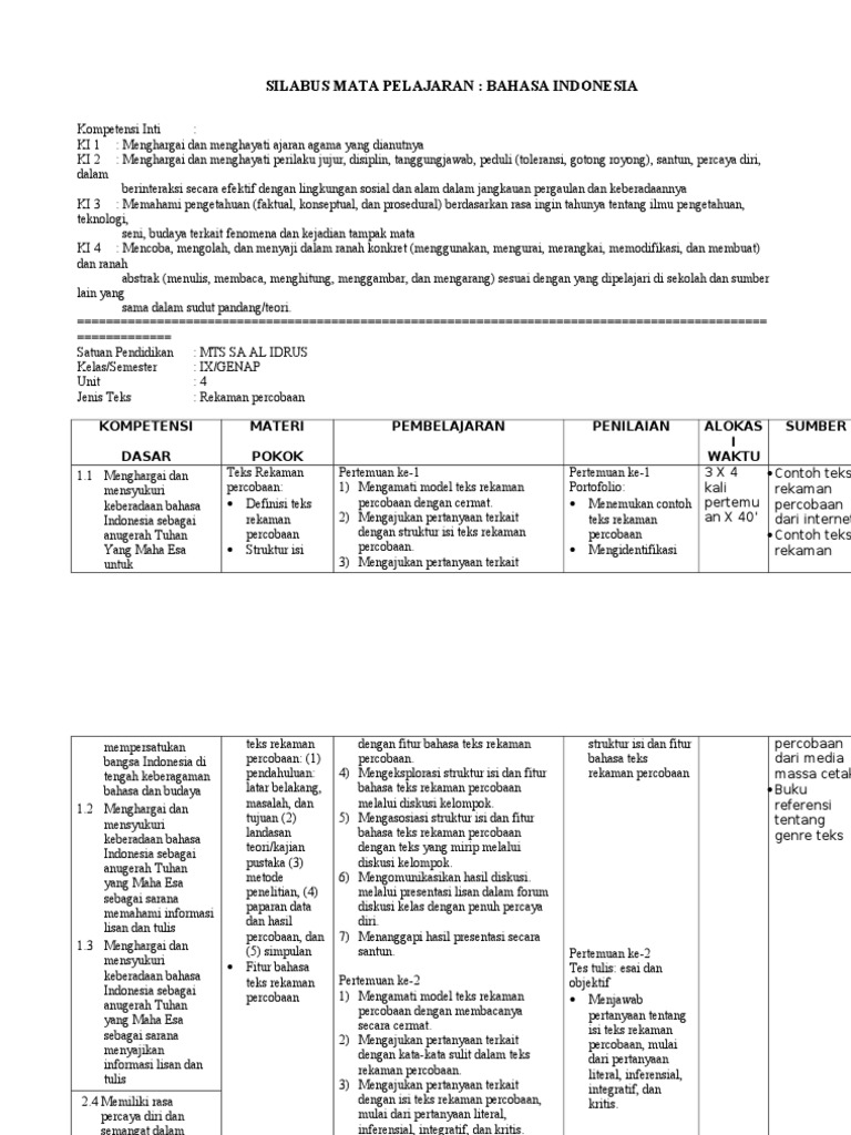 Silabus Marbi Bahasa Indonesia Kelas 8 : SIlabus Bahasa Indonesia Kelas X/1 (Mendengarkan Berita) ~ NGANGSU KAWERUH. Selain dari rpp dan silabus, andapun bisa download perangkat pelengkap lainnya, silahkan download dan cek berkasnya : File silabus disusun dalam format berekstensi.docx sehingga dapat diedit sesuai dengan smp/mts anda. Download file dalam format.docx m. Berikut ini adalah berkas silabus mts mapel pai dan bahasa arab kurikulum 2013 kelas 7 8 9 revisi 2016. Rangkuman materi pelajaran bahasa indonesia kelas viii (8) smp.